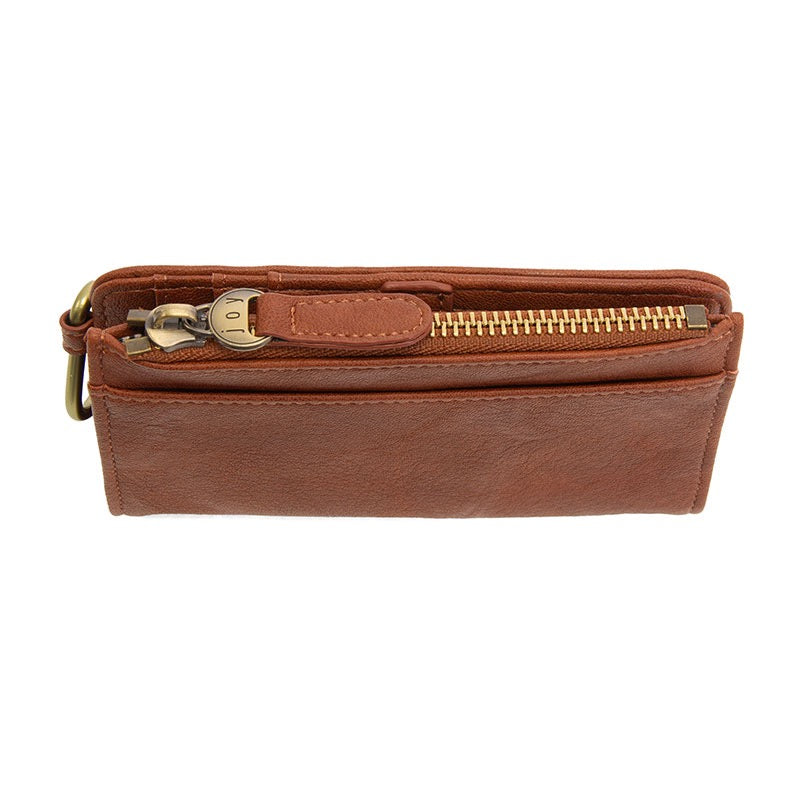 Slim and compact but with full wallet function, meet Bobbie! Loaded with 6 credit pockets, an ID window, 2 billfold pockets, a large zipper pocket and an extra slide pocket on the exterior plus a removable carabiner to hang your keys or hang on your bag you will have space for everything. Fashioned in our super soft tumbled vegan leather and accented with our signature zip pull.