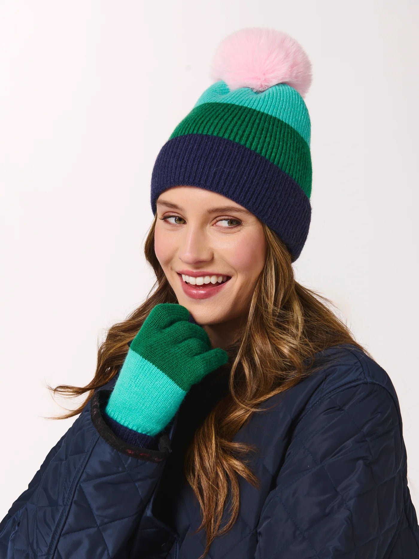 Cold hands? Not on our watch. The Charlotte Touchscreen Gloves keep your fingers warm and functional, thanks to their soft knit design and touch-friendly fingertips. Featuring bold, color-blocked stripes and a cozy ribbed cuff, these gloves are as cute as they are practical—so you can scroll, snap, and send without ever taking them off.