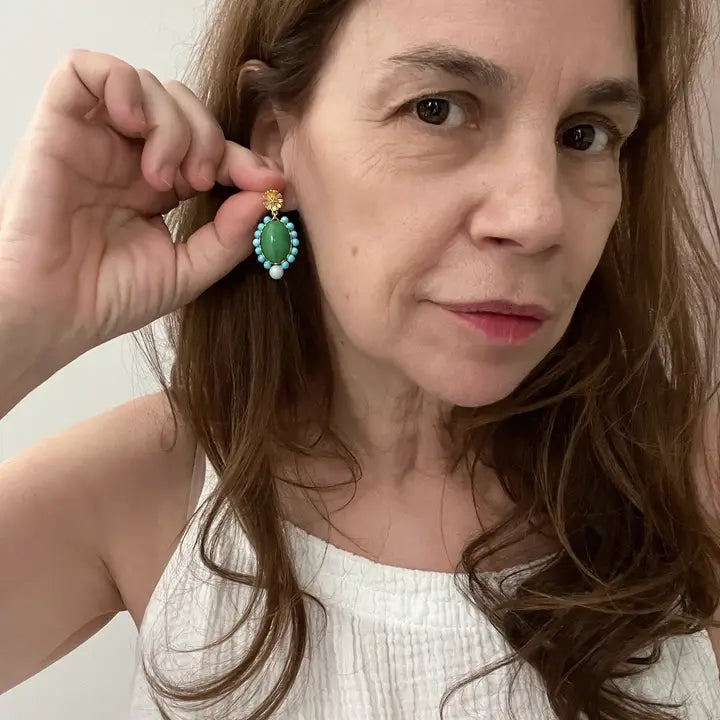 These earrings are truly eye-catching! Their lively colors add a burst of fun and brightness to your day! Note the very cute flower posy top!