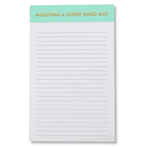 {"id":7220459208807,"title":"Adulting + Other Hard Shit - Lined Notepad","handle":"adulting-other-hard-shit-lined-notepad","description":"\u003cp\u003e \u003c\/p\u003e\n\u003cp\u003e\u003cspan\u003e\"Adulting + Other Hard Shit\" - Sea Foam Green Notepad\u003c\/span\u003e\u003c\/p\u003e\n\u003cp class=\"p1\"\u003e\u003cspan\u003eTruly the best f*cking notepad and while we may be biased, we know paper and these are the sheeeeet. \u003c\/span\u003e\u003c\/p\u003e\n\u003cp class=\"p1\"\u003e\u003cspan\u003eWhat do you get when you combine exceptionally thick paper, superb perforation and a wildly accurate and often hilarious phrase? Chez Gagné’s perfect notepads. Here to appease even the most OCD of us, our pristine perforated tear and heavy weight lined paper notepads are the ideal writing surface for manically jotting out your honey-do, shit-to-do, reminder or grocery list. Because we all know if it doesn’t get written down, it’s not getting done. We promise, you’ll f*cking love these.\u003c\/span\u003e\u003c\/p\u003e","published_at":"2025-02-26T17:15:51-06:00","created_at":"2025-02-26T17:15:51-06:00","vendor":"Chez Gagne","type":"Note Pad","tags":["notepad","Stationery"],"price":1050,"price_min":1050,"price_max":1050,"available":false,"price_varies":false,"compare_at_price":null,"compare_at_price_min":0,"compare_at_price_max":0,"compare_at_price_varies":false,"variants":[{"id":41235234848871,"title":"Default Title","option1":"Default Title","option2":null,"option3":null,"sku":"","requires_shipping":true,"taxable":true,"featured_image":null,"available":false,"name":"Adulting + Other Hard Shit - Lined Notepad","public_title":null,"options":["Default Title"],"price":1050,"weight":227,"compare_at_price":null,"inventory_management":"shopify","barcode":"00600019","requires_selling_plan":false,"selling_plan_allocations":[]}],"images":["\/\/indieindiebangbang.com\/cdn\/shop\/files\/45.webp?v=1740611632"],"featured_image":"\/\/indieindiebangbang.com\/cdn\/shop\/files\/45.webp?v=1740611632","options":["Title"],"media":[{"alt":"Adulting + Other Hard Shit - Lined Notepad - Indie Indie Bang! Bang!","id":26132710981735,"position":1,"preview_image":{"aspect_ratio":1.0,"height":1000,"width":1000,"src":"\/\/indieindiebangbang.com\/cdn\/shop\/files\/45.webp?v=1740611632"},"aspect_ratio":1.0,"height":1000,"media_type":"image","src":"\/\/indieindiebangbang.com\/cdn\/shop\/files\/45.webp?v=1740611632","width":1000}],"requires_selling_plan":false,"selling_plan_groups":[],"content":"\u003cp\u003e \u003c\/p\u003e\n\u003cp\u003e\u003cspan\u003e\"Adulting + Other Hard Shit\" - Sea Foam Green Notepad\u003c\/span\u003e\u003c\/p\u003e\n\u003cp class=\"p1\"\u003e\u003cspan\u003eTruly the best f*cking notepad and while we may be biased, we know paper and these are the sheeeeet. \u003c\/span\u003e\u003c\/p\u003e\n\u003cp class=\"p1\"\u003e\u003cspan\u003eWhat do you get when you combine exceptionally thick paper, superb perforation and a wildly accurate and often hilarious phrase? Chez Gagné’s perfect notepads. Here to appease even the most OCD of us, our pristine perforated tear and heavy weight lined paper notepads are the ideal writing surface for manically jotting out your honey-do, shit-to-do, reminder or grocery list. Because we all know if it doesn’t get written down, it’s not getting done. We promise, you’ll f*cking love these.\u003c\/span\u003e\u003c\/p\u003e"}