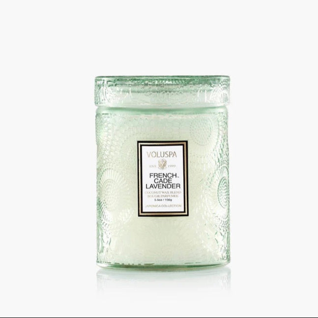 Fragrance Family: WoodyNotes of French Cade Wood, Verbena & Bulgarian Lavender. The rustic, woodsy and herbaceous nature of sun-drenched Provence is harvested with an aromatic infusion of lush lavender, rare French cade wood and vivid lemon verbena. Embodying a true farm to table experience, feel the creation of refreshing and calming energy, like a breeze on a summer day. Voluspa's unique coconut wax blend is housed in a 5.5 oz. glass embossed vessel and is topped with a matching lid that keeps the candle dust-free when not in use. The single wick allows you to enjoy fragrance throw for 50 hours. Our candles are handcrafted in the United States and feature our proprietary, clean-burning coconut wax blend and natural wicks. Our products are free of phthalates, pesticides, parabens and sulfates and are never tested on animals. Up-cycle this best seller into a keepsake after the last burn.
