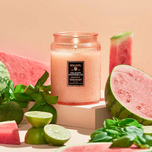 Fragrance Family: Citrus / FruityNotes of Chilled Watermelon, Pressed Lime & Holy Basil. As the sun peaks in the Kalahari desert, a labyrinth of monochromatic tones transforms heat into euphoria. The desert comes to life, inviting you to an oasis of nourishment and vigor. A muddled libation of chilled Wild Watermelon, Crisp Cucumber, and Bailan Melon intermingle with a lounging sprig of Holy Basil, exalted to perfection with a dash of White Cardamom and Pressed Lime Zest. As Nirvana sets in, we invite you to stay a while… Voluspas unique coconut wax blend is housed in a 18 oz. embossed glass vessel and is topped with a metal lid, adorned with Japonica detailing that keeps the candle dust-free when not in use. The single wick allows you to enjoy fragrance throw for 100 hours. Our candles are handcrafted in the United States and feature our proprietary, clean-burning coconut wax blend and natural wicks. Our products are free of phthalates, pesticides, parabens and sulfates and are never tested on animals. Up-cycle this best seller into a keepsake after the last burn.