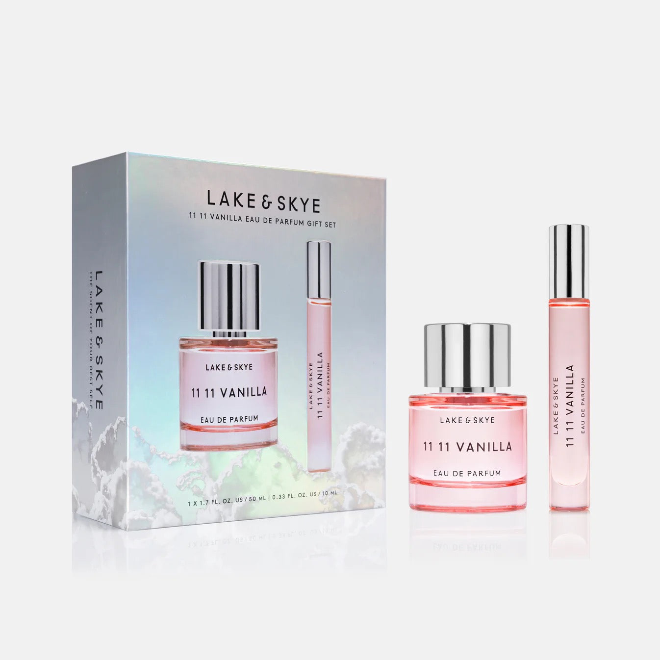 The Limited Edition 11 11 Vanilla Eau de ParfumDuo Gift Set includes: one full size 50mL 11 11 Vanilla Eau de Parfum and one 10mL travel size 11 11 Vanilla Eau de Parfum.