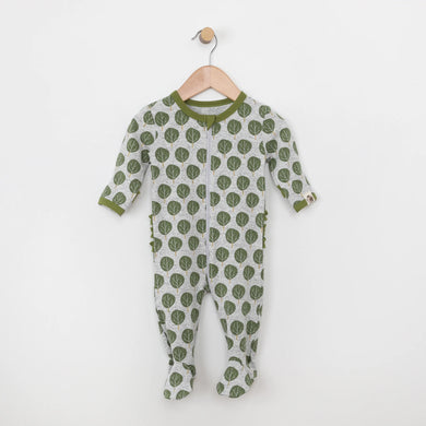 • Vintage Balloon Ruffle Zipper Bamboo Footed Romper