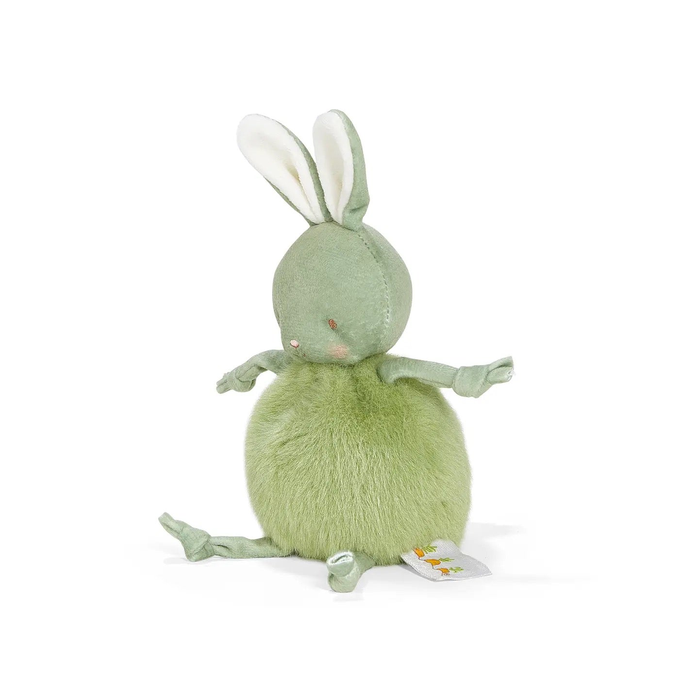 Bunnies by the Bay's teeniest new stuffed animal friends happily fit in the tiniest hands. This is a fluffy, round, Pistachio furred stuffed bunny with velour face and dangly arms and legs. Features embroidered faces and their signature blushed cheeks.