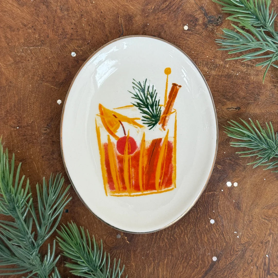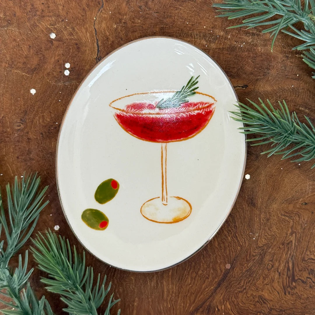 This Holiday Oval Stoneware Dish is the perfect addition to your holiday table setting. Available in four different styles, this dish features festive cocktail designs that will add a fun touch to your dining experience.