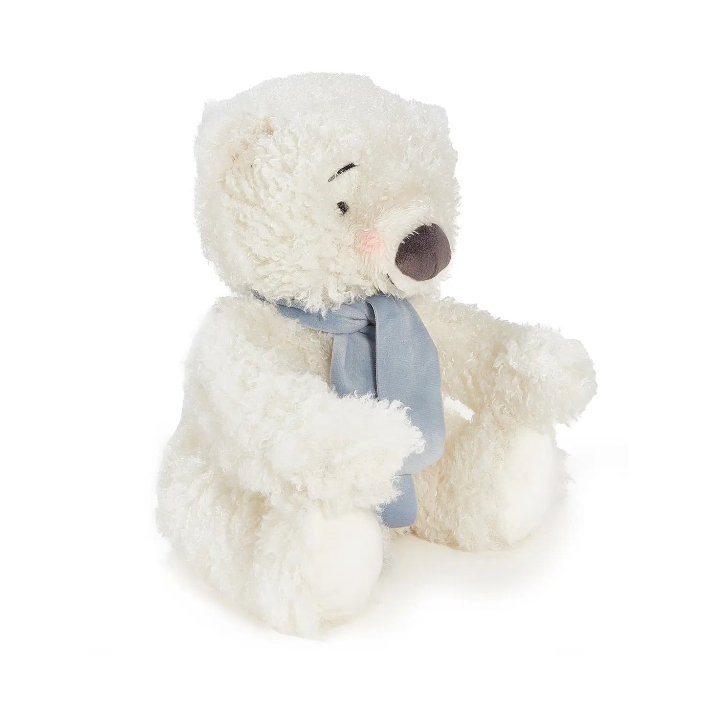 10.5" sitting Hand-embroidered features Safe for all ages 100% polyester Spot Clean Only Boris, the cuddliest polar bear you'll ever know! With his luxuriously soft white fur and an adorable blue scarf, Boris is ready to bring a touch of winter magic to your snuggles.