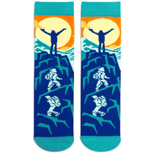 Gear up for your next adventure with these exhilarating socks that are sure to elevate your spirits. Featuring a playful design of hikers scaling a steep slope and the clever phrase 'Adjust Your Altitude' on the soles, these socks are not just stylish, they're also a peak experience! Perfect for any mountain lover who wants to put their best foot forward.
