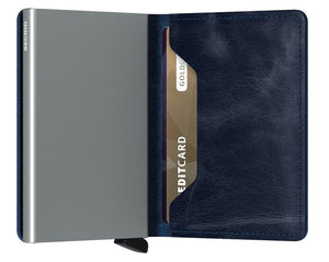 Its slim profile allows the Slimwallet to fit perfectly into any pocket. The open exterior is designed extra wide to accommodate cards, banknotes and receipts. The Cardprotector mechanism enables you to slide out cards with a simple motion, while the aluminium construction protects your cards from bending, breaking and unwanted wireless communication.