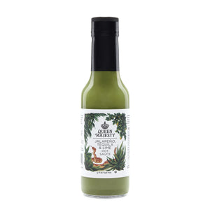 Queen Majesty Jalapeño Tequila & Lime Hot Sauce balances a refreshing flavor with a satisfying heat. This original recipe combines the incredibly complimentary flavors of fresh green jalapeños, silver agave tequila, and ripe lime juice. This sauce incorporates onions for additional sweetness and whole garlic cloves for depth of flavor. This everyday sauce works perfectly on grilled seafood, tacos, potatoes, egg sandwiches, and more. Try it on everything! 🌮🥗🍳