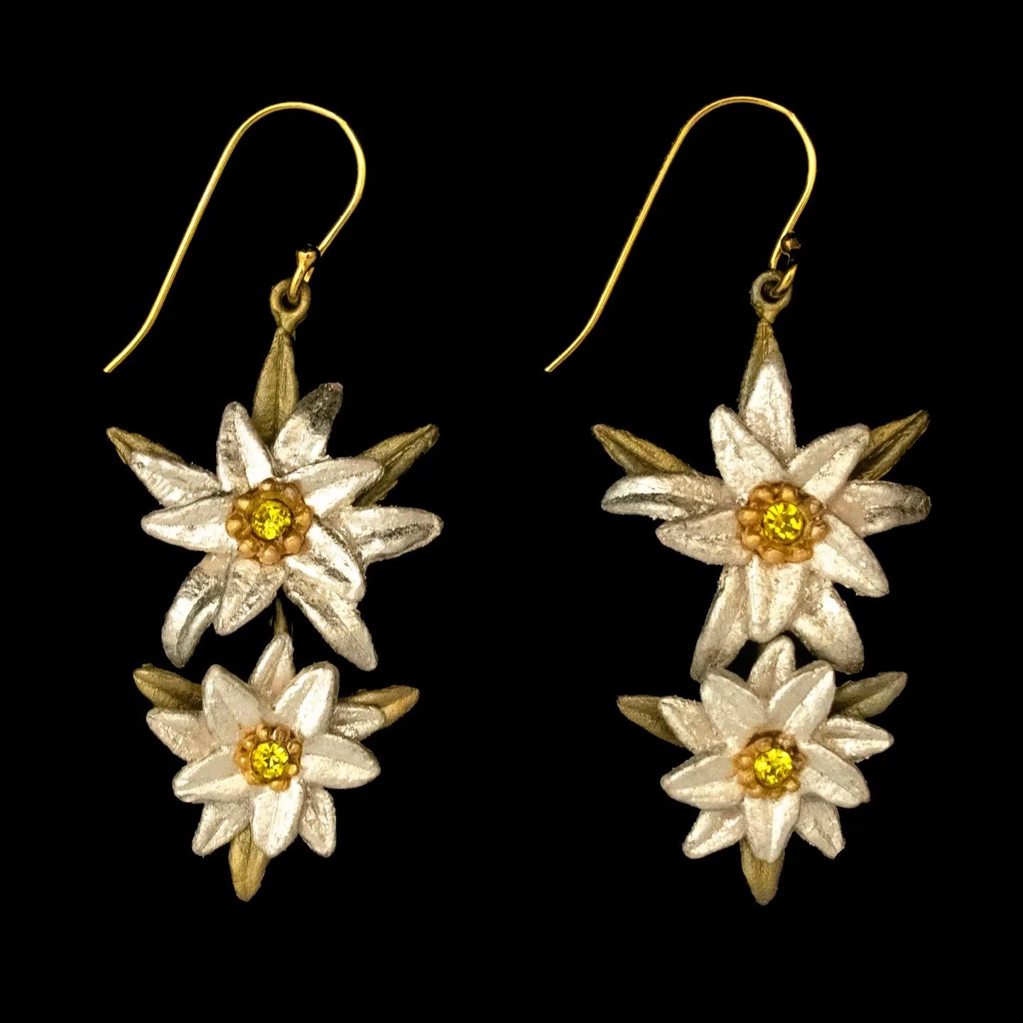 {"id":7217026531431,"title":"Michael Michaud | Double Edelweiss Long Earrings","handle":"michael-michaud-edelweiss-long-wire-earrings","description":"\u003cp\u003e \u003c\/p\u003e\n\u003cp\u003eThese Edelweiss earrings from Michael Michaud are beautiful! They will make the perfect gift to a loved one or for yourself! \u003cspan\u003eCast bronze with a hand patina finish. Accented with 22k white gold leaf and an Austrian crystal center set in 24k gold. \u003c\/span\u003eAdd this treasure to your jewelry collection. Made in the USA.\u003c\/p\u003e\n\u003cp\u003e\u003cspan\u003e\u003cspan style=\"text-decoration: underline;\"\u003e\u003cstrong\u003eAbout Michael Michaud Jewelry\u003c\/strong\u003e\u003c\/span\u003e\u003cbr\u003eThe Michael Michaud Jewelry Collection, designed by Michael Michaud, is a world renowned collection of botanical jewelry. It captures the beauty and exquisite detail of nature using soft patinas on bronze accented with pearls, beads, coral and stones. His exacting attention to detail gives you true to nature, botanical jewelry.\u003cbr\u003e\u003cbr\u003eThis unique jewelry is made by creating molds directly from botanical elements in a process similar to lost-wax casting. While traditional lost-wax casting begins with a hand-carved model of wax, Michael Michaud instead uses an actual leaf, branch or flower in place of the wax model. A mold is created around the botanical element and as it is heated the plant matter burns away and leaves behind a beautifully detailed mold of itself.\u003cbr\u003e\u003cbr\u003eMichael Michaud Jewelry is renowned for its beauty and workmanship and is featured in the finest museums, galleries and speciality retailers around the world. Many collections are commissioned by leading museums such as The Victoria \u0026amp; Albert Museum, The Art Institute of Chicago, The National Gallery of Art and the Château de Versailles.\u003cbr\u003e\u003cbr\u003eEach piece of Michael Michaud Jewelry is handcrafted in New York, U.S.A\u003c\/span\u003e\u003c\/p\u003e","published_at":"2025-02-20T16:45:57-06:00","created_at":"2025-02-20T16:36:22-06:00","vendor":"Michael Michaud","type":"Earrings","tags":["Earrings","Jewelry"],"price":12800,"price_min":12800,"price_max":12800,"available":true,"price_varies":false,"compare_at_price":null,"compare_at_price_min":0,"compare_at_price_max":0,"compare_at_price_varies":false,"variants":[{"id":41226149691495,"title":"Default Title","option1":"Default Title","option2":null,"option3":null,"sku":"3812BZ","requires_shipping":true,"taxable":true,"featured_image":null,"available":true,"name":"Michael Michaud | Double Edelweiss Long Earrings","public_title":null,"options":["Default Title"],"price":12800,"weight":57,"compare_at_price":null,"inventory_management":"shopify","barcode":"38120015","requires_selling_plan":false,"selling_plan_allocations":[]}],"images":["\/\/indieindiebangbang.com\/cdn\/shop\/files\/Image_128_cac4c560-8721-47c7-a927-204b4b9368ec.jpg?v=1765317851","\/\/indieindiebangbang.com\/cdn\/shop\/files\/IMG_3182.jpg?v=1765317851","\/\/indieindiebangbang.com\/cdn\/shop\/files\/IMG_3181.jpg?v=1765317851"],"featured_image":"\/\/indieindiebangbang.com\/cdn\/shop\/files\/Image_128_cac4c560-8721-47c7-a927-204b4b9368ec.jpg?v=1765317851","options":["Title"],"media":[{"alt":null,"id":29838183596135,"position":1,"preview_image":{"aspect_ratio":1.0,"height":1440,"width":1440,"src":"\/\/indieindiebangbang.com\/cdn\/shop\/files\/Image_128_cac4c560-8721-47c7-a927-204b4b9368ec.jpg?v=1765317851"},"aspect_ratio":1.0,"height":1440,"media_type":"image","src":"\/\/indieindiebangbang.com\/cdn\/shop\/files\/Image_128_cac4c560-8721-47c7-a927-204b4b9368ec.jpg?v=1765317851","width":1440},{"alt":"Michael Michaud Edelweiss Long Wire Earrings - Indie Indie Bang! Bang!","id":26111253839975,"position":2,"preview_image":{"aspect_ratio":1.0,"height":2693,"width":2693,"src":"\/\/indieindiebangbang.com\/cdn\/shop\/files\/IMG_3182.jpg?v=1765317851"},"aspect_ratio":1.0,"height":2693,"media_type":"image","src":"\/\/indieindiebangbang.com\/cdn\/shop\/files\/IMG_3182.jpg?v=1765317851","width":2693},{"alt":"Michael Michaud Edelweiss Long Wire Earrings - Indie Indie Bang! Bang!","id":26111253807207,"position":3,"preview_image":{"aspect_ratio":1.0,"height":4285,"width":4284,"src":"\/\/indieindiebangbang.com\/cdn\/shop\/files\/IMG_3181.jpg?v=1765317851"},"aspect_ratio":1.0,"height":4285,"media_type":"image","src":"\/\/indieindiebangbang.com\/cdn\/shop\/files\/IMG_3181.jpg?v=1765317851","width":4284}],"requires_selling_plan":false,"selling_plan_groups":[],"content":"\u003cp\u003e \u003c\/p\u003e\n\u003cp\u003eThese Edelweiss earrings from Michael Michaud are beautiful! They will make the perfect gift to a loved one or for yourself! \u003cspan\u003eCast bronze with a hand patina finish. Accented with 22k white gold leaf and an Austrian crystal center set in 24k gold. \u003c\/span\u003eAdd this treasure to your jewelry collection. Made in the USA.\u003c\/p\u003e\n\u003cp\u003e\u003cspan\u003e\u003cspan style=\"text-decoration: underline;\"\u003e\u003cstrong\u003eAbout Michael Michaud Jewelry\u003c\/strong\u003e\u003c\/span\u003e\u003cbr\u003eThe Michael Michaud Jewelry Collection, designed by Michael Michaud, is a world renowned collection of botanical jewelry. It captures the beauty and exquisite detail of nature using soft patinas on bronze accented with pearls, beads, coral and stones. His exacting attention to detail gives you true to nature, botanical jewelry.\u003cbr\u003e\u003cbr\u003eThis unique jewelry is made by creating molds directly from botanical elements in a process similar to lost-wax casting. While traditional lost-wax casting begins with a hand-carved model of wax, Michael Michaud instead uses an actual leaf, branch or flower in place of the wax model. A mold is created around the botanical element and as it is heated the plant matter burns away and leaves behind a beautifully detailed mold of itself.\u003cbr\u003e\u003cbr\u003eMicha