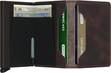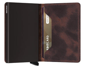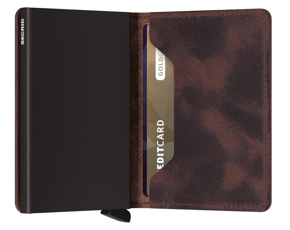 Its slim profile allows the Slimwallet to fit perfectly into any pocket. The open exterior is designed extra wide to accommodate cards, banknotes and receipts. The Cardprotector mechanism enables you to slide out cards with a simple motion, while the aluminium construction protects your cards from bending, breaking and unwanted wireless communication.